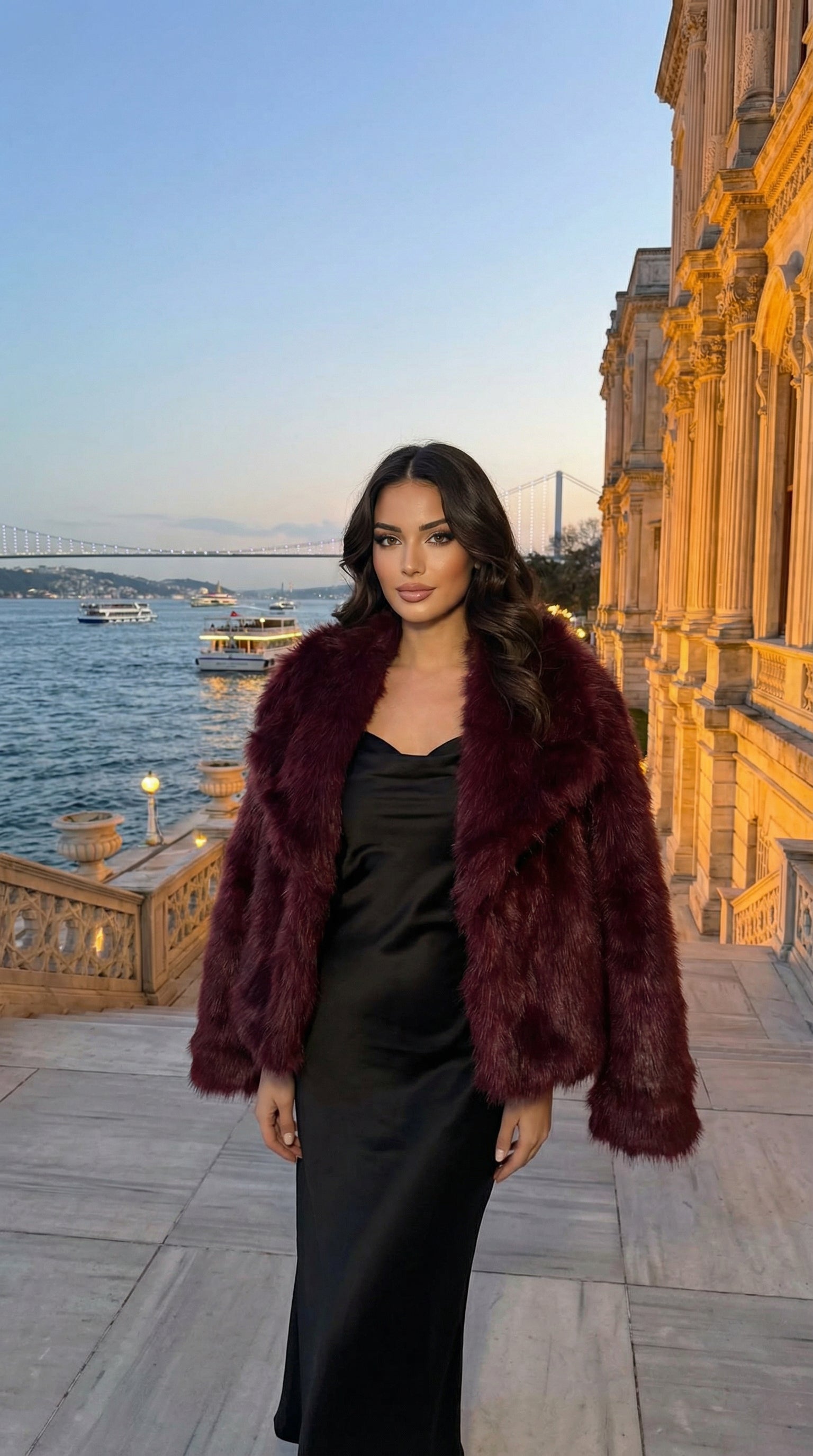 Alan; yumuşak dokulu yapay kürk formu, güçlü omuz hattı ve hacimli yaka tasarımıyla soğuk günlere çarpıcı bir stil getiriyor. Hem şehirde hem özel davetlerde tek parça ile ikonik bir görünüm.