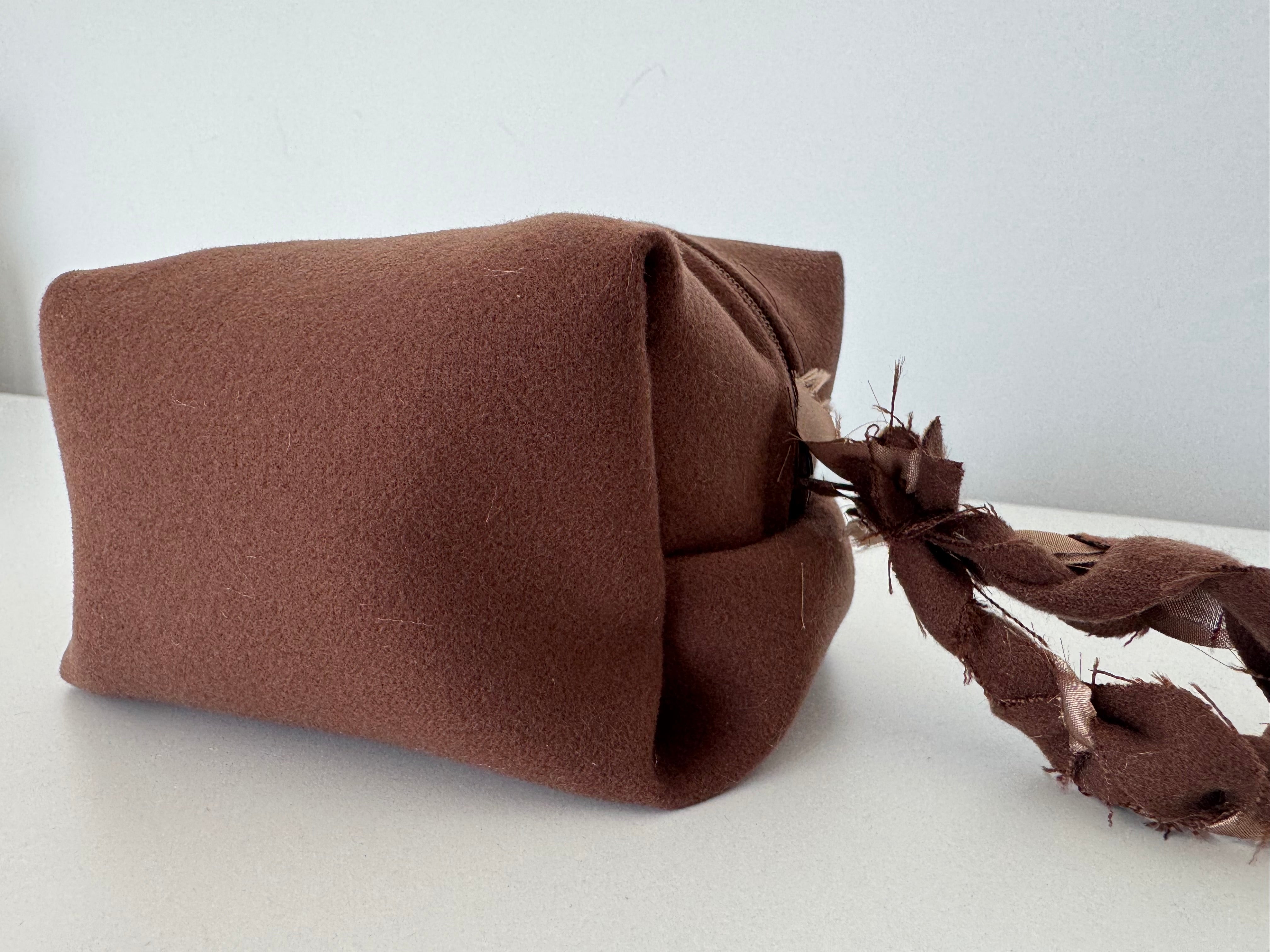 Kendi kumaşından makyaj çantası hediyelidir 🤍