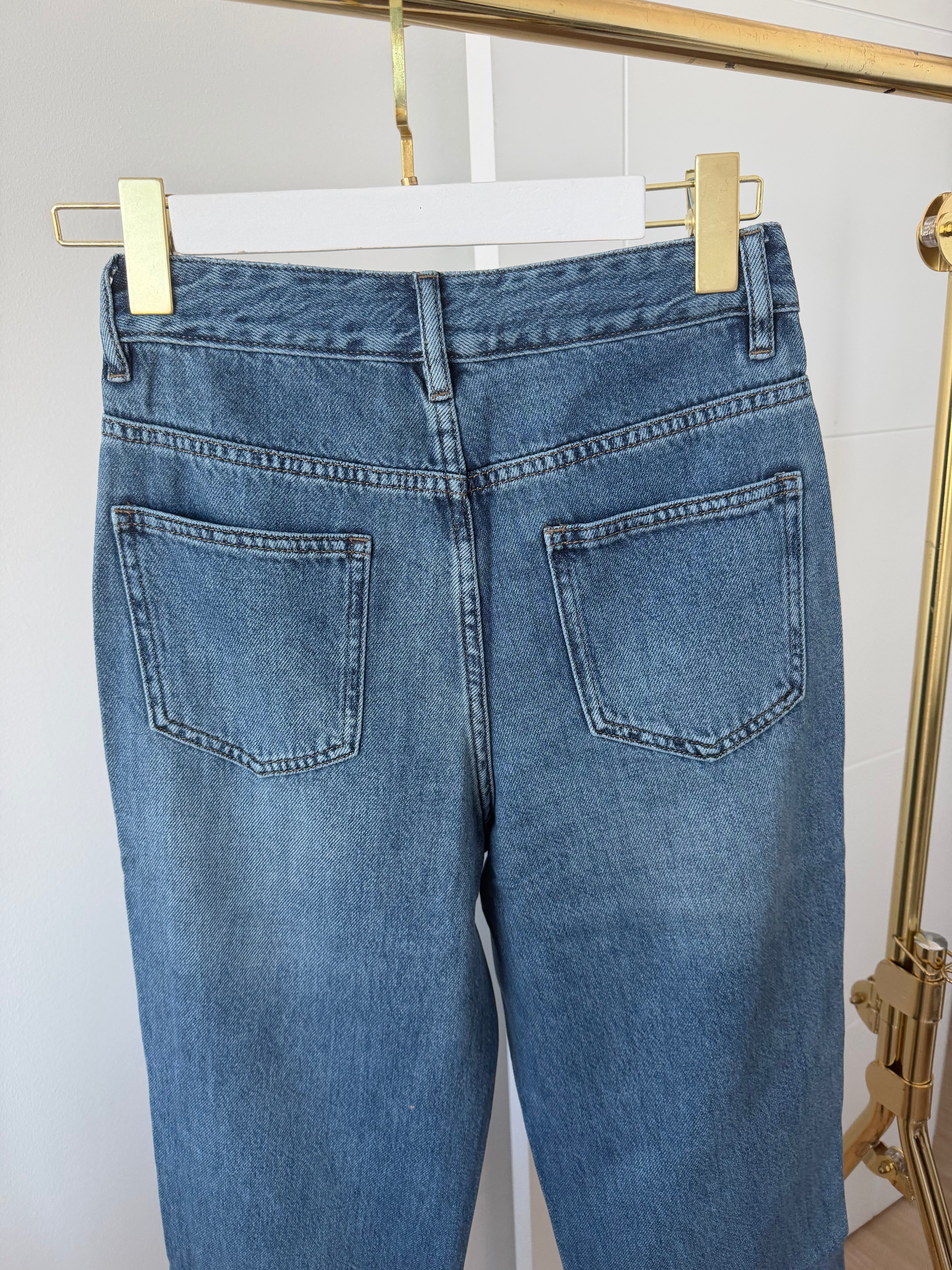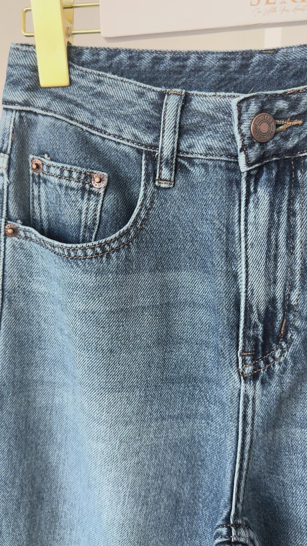 Yüksek bel formu ve rahat kesimiyle konforu zarafetle buluşturan bu denim pantolon, sezonun en trend siluetlerinden biri. Hafif dökümlü paça yapısı, vücut hatlarını dengeleyerek modern bir görünüm sunar.