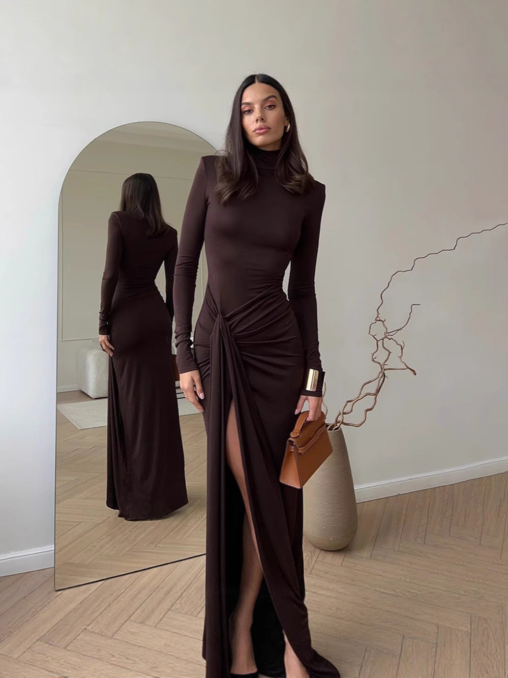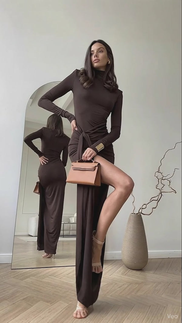 Şıklığın zarafetle buluştuğu ELLE elbise; vücuda oturan silueti, yüksek yırtmacı ve drape detaylarıyla kusursuz bir görünüm sunar. Esnek kumaşı ile hem özel davetlerde hem akşam şıklığında rahatça hareket etmeni sağlar. Minimal ama etkisi büyük bir stil için idealdir.