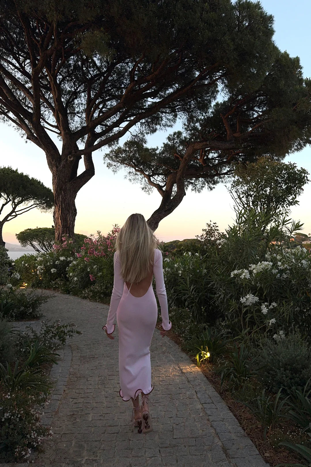 Minda Sırtı Açık Midi Pembe Triko Elbise