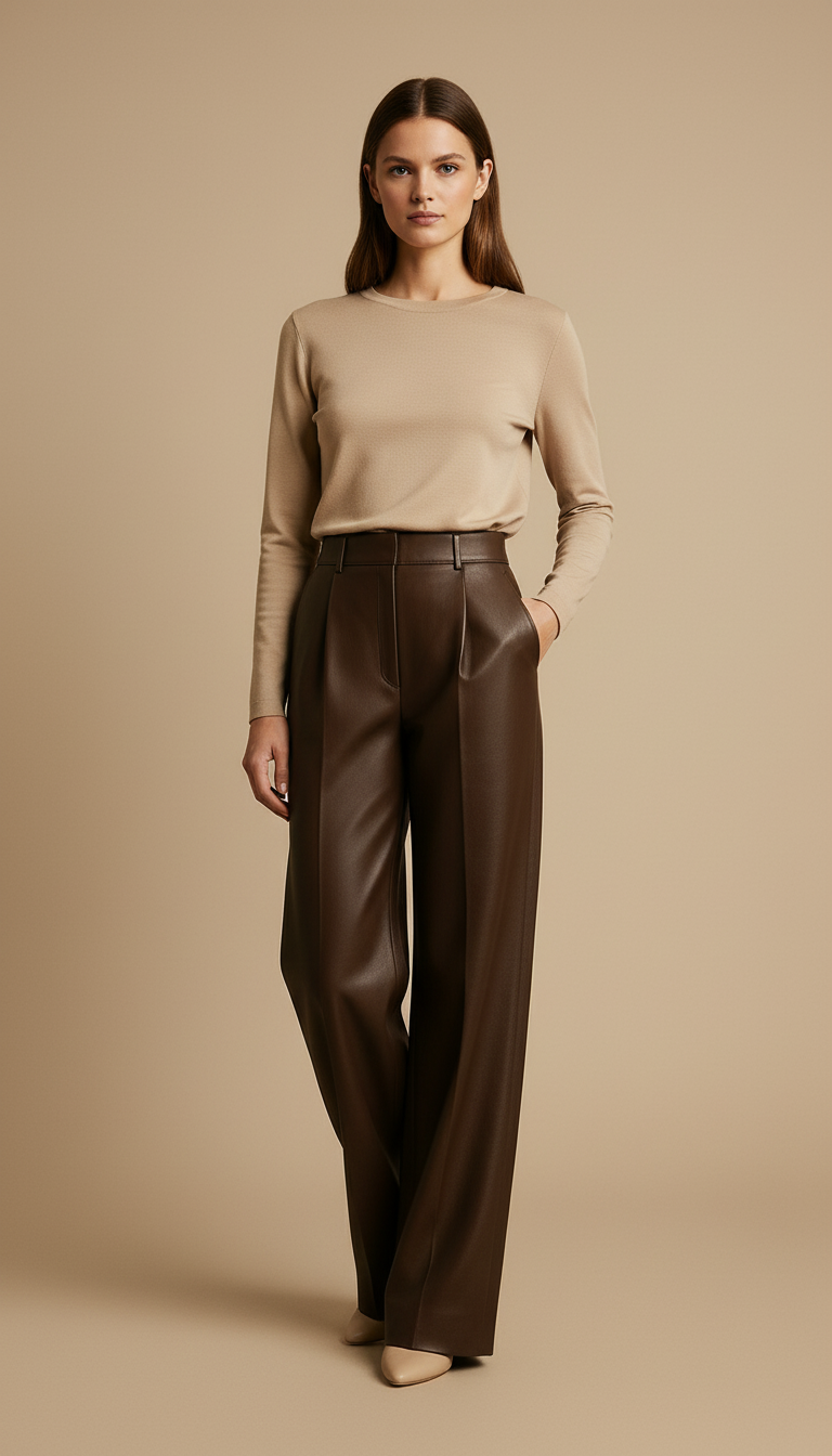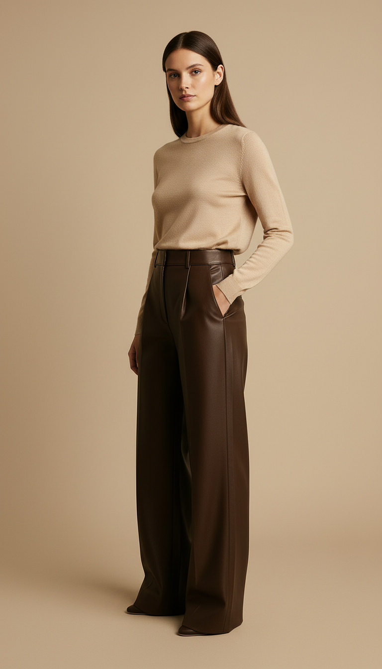Porta Kahverengi Yüksekbel Deri Palazzo Pantolon