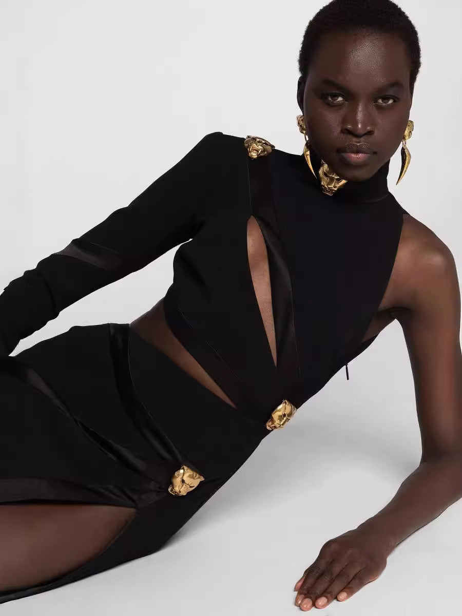 ROAR – Gold Aksesuar Detaylı Cut-Out Siyah Elbise