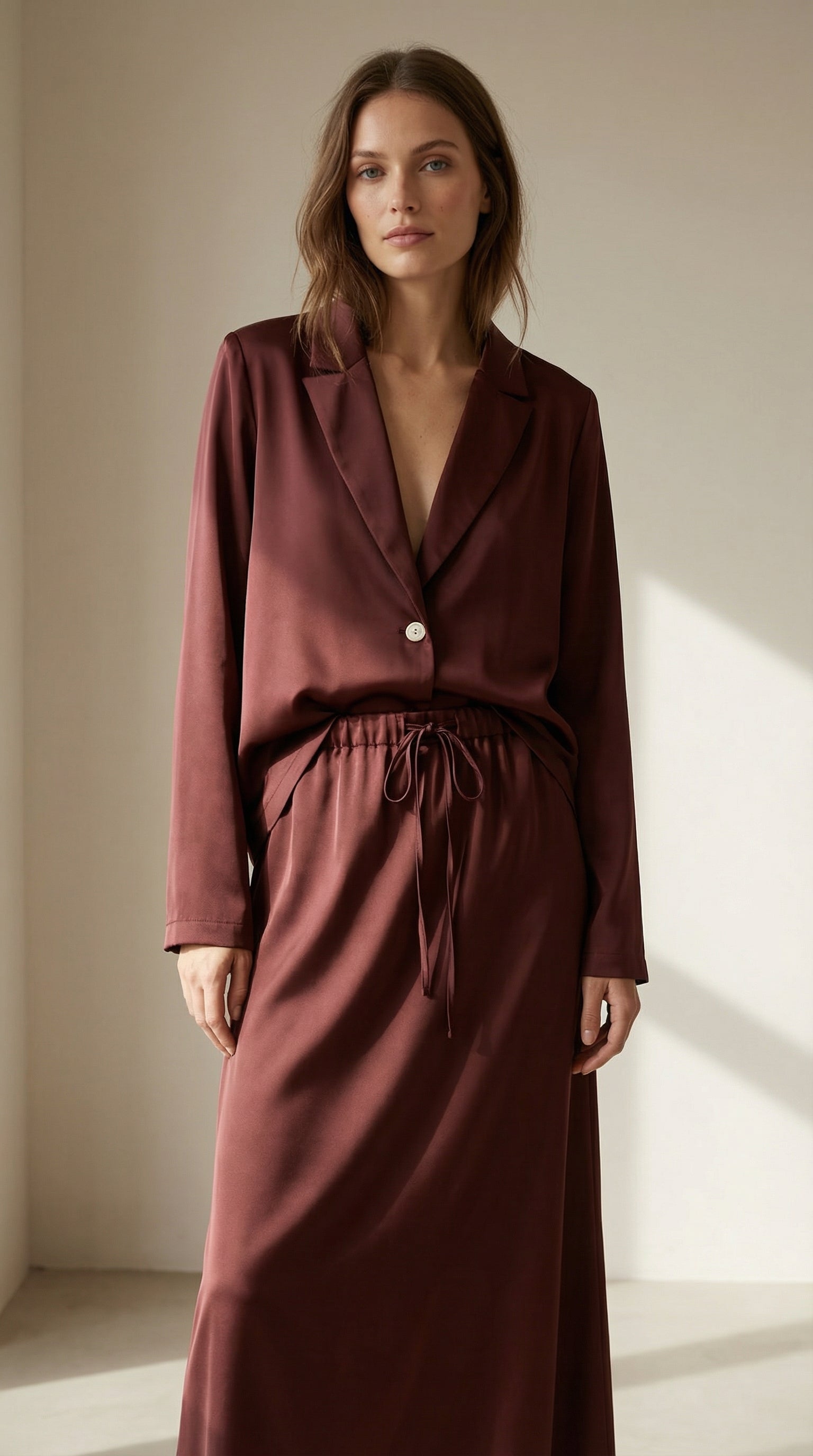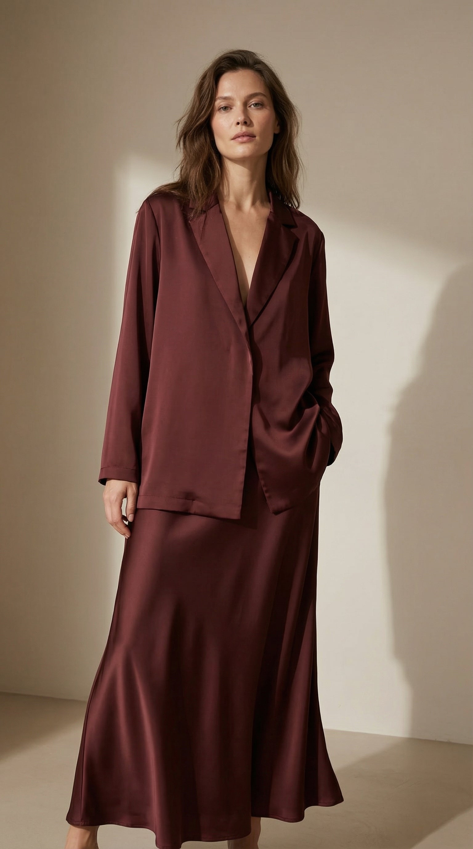 Vilma Saten Bordo Blazer Etek Takım
