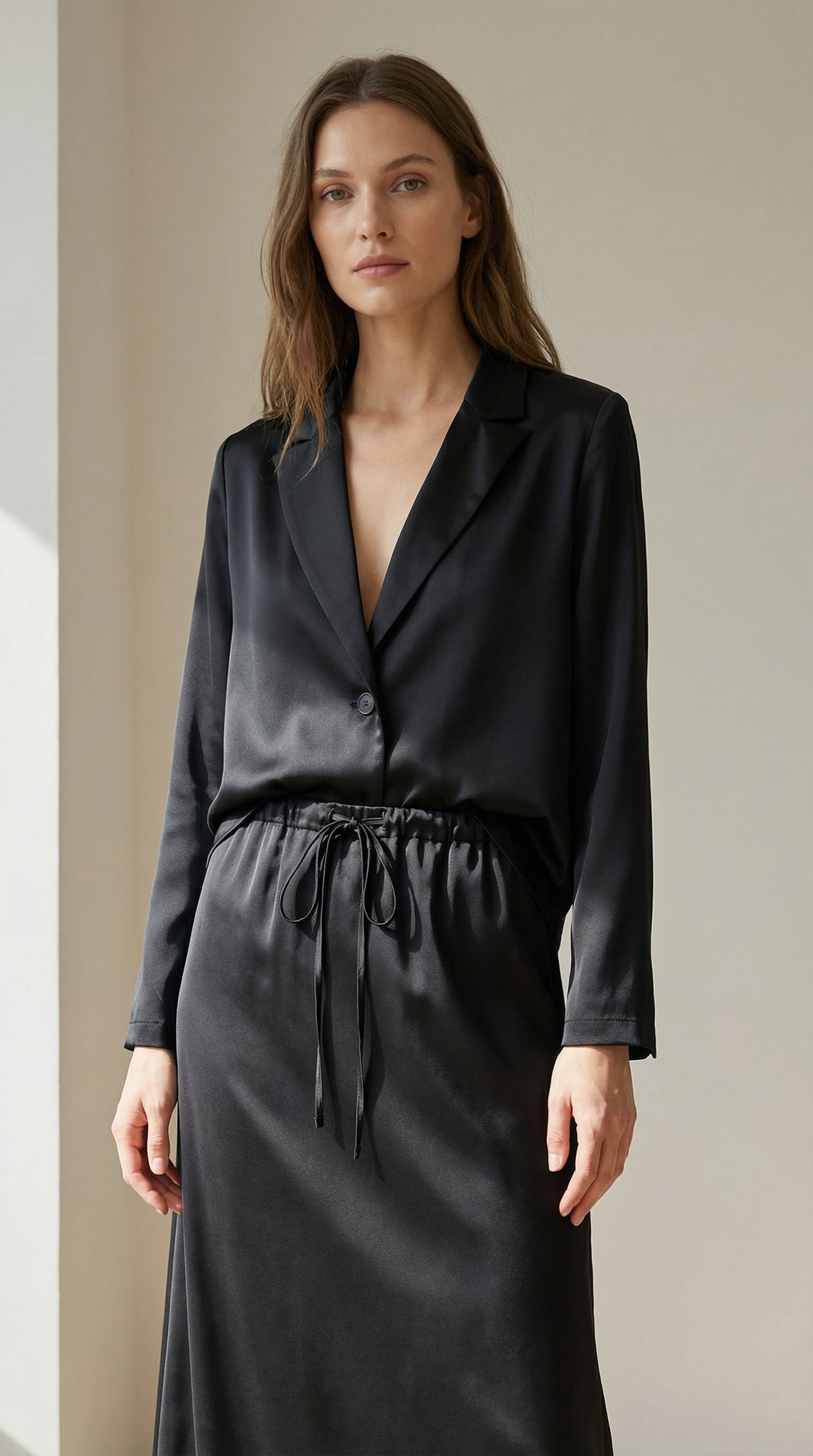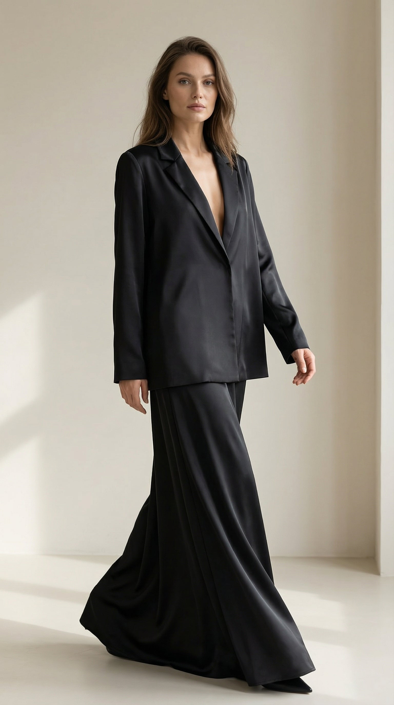 Vilma Saten Siyah Blazer Etek Takım